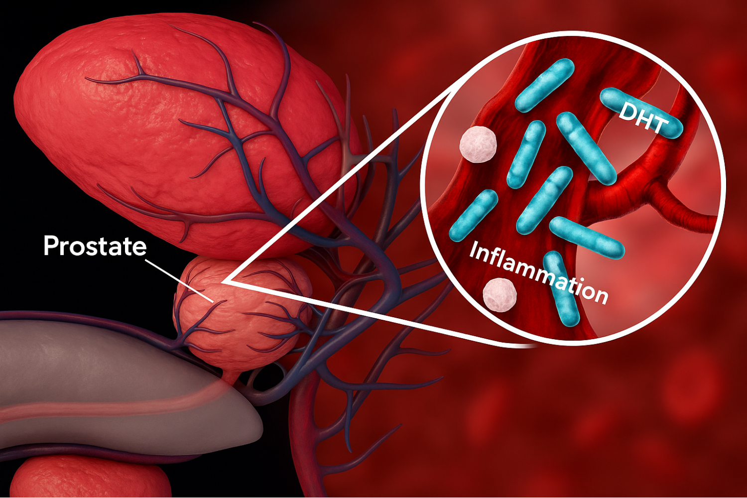 Esse hormônio, quando desregulado, faz a próstata aumentar e comprimir a uretra, como se alimentasse o problema continuamente. Os tratamentos convencionais oferecem alívio temporário, mas não impedem a ação do DHT, apenas relaxam músculos ou bloqueiam enzimas por algumas horas.